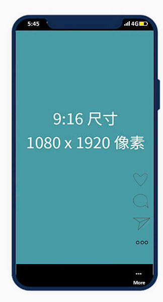 IG 限時動態影片比例為 9:16,1080 x 1920 像素。