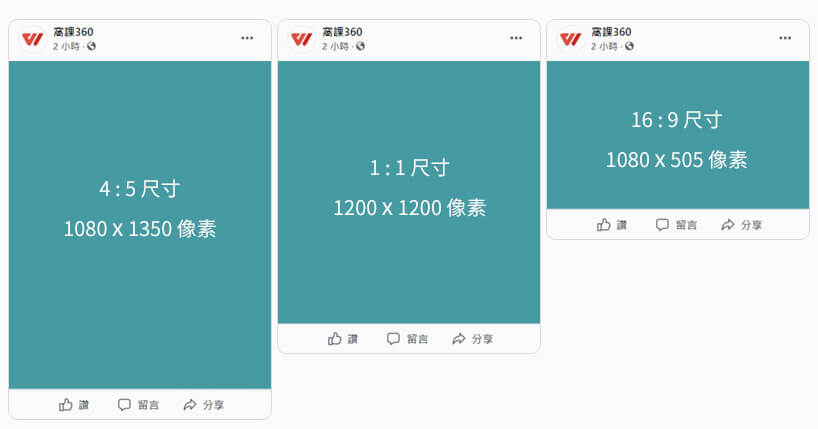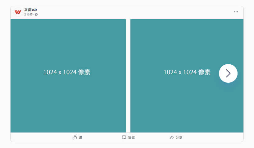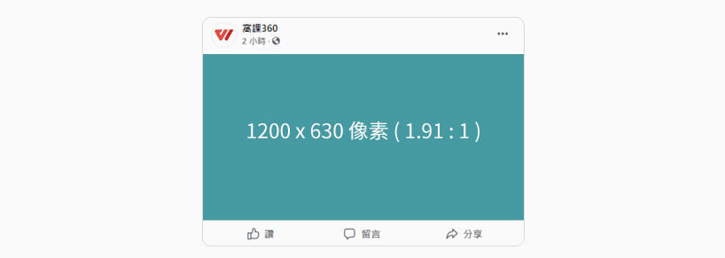單圖、有連結的貼文,縮圖尺寸最佳比例為 1.91:1,官方建議最佳尺寸為 1200x630 像素,建議不要低於 600x315 像素,避免連結縮小變小。