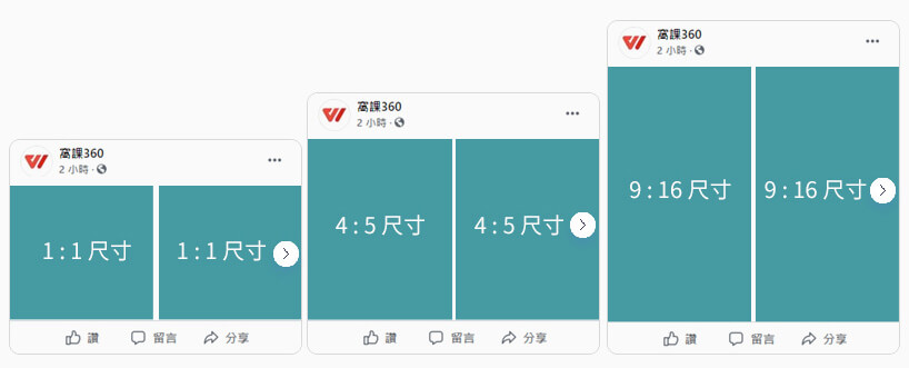 FB單圖分為兩種尺寸,較長形的圖為 2:3,正方形圖為 1:1。