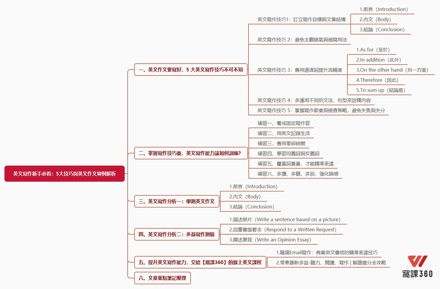 其實英文作文和中文作文一樣,都講究起承轉合與清楚的段落結構。在動筆前先建立大綱,不僅能釐清思路,也能讓整篇文章更有邏輯。以下整理出 3 種實用的英文寫作技巧,幫助你在寫作前能快速掌握方向。