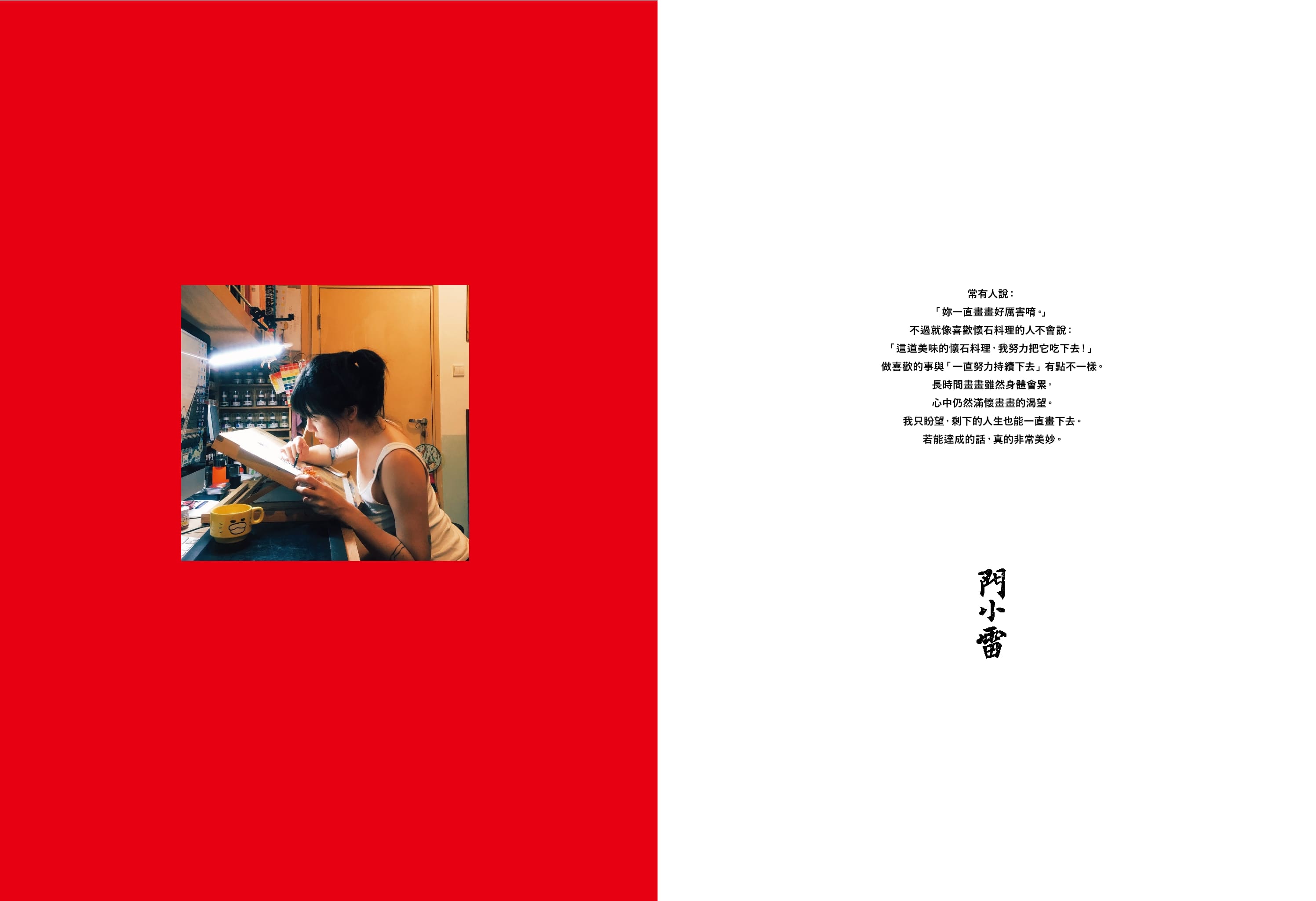 門小雷是個奇妙的人。沉默寡言,好像隨時都在畫些什麼。生長在香港這個受歷史作弄,卻又充滿著生氣蓬勃、精力充沛的人們的街道,她必定心中懷抱著各種想法,默默地持續創作表現。她說自懂事以後,從來不曾想過停止畫圖。我們請她稍微談談自己。