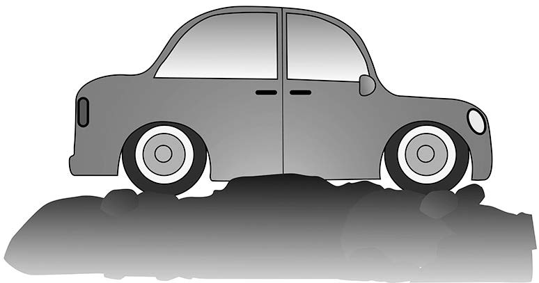 那道謎題看上去有點像我們面臨的窘境,但又有點不同—我們不是困在高架橋下方,而是卡在一塊隆起之上。也許我們可以替輪胎打氣⋯⋯但很遺憾,我們沒有打氣筒。我們該怎麼辦?