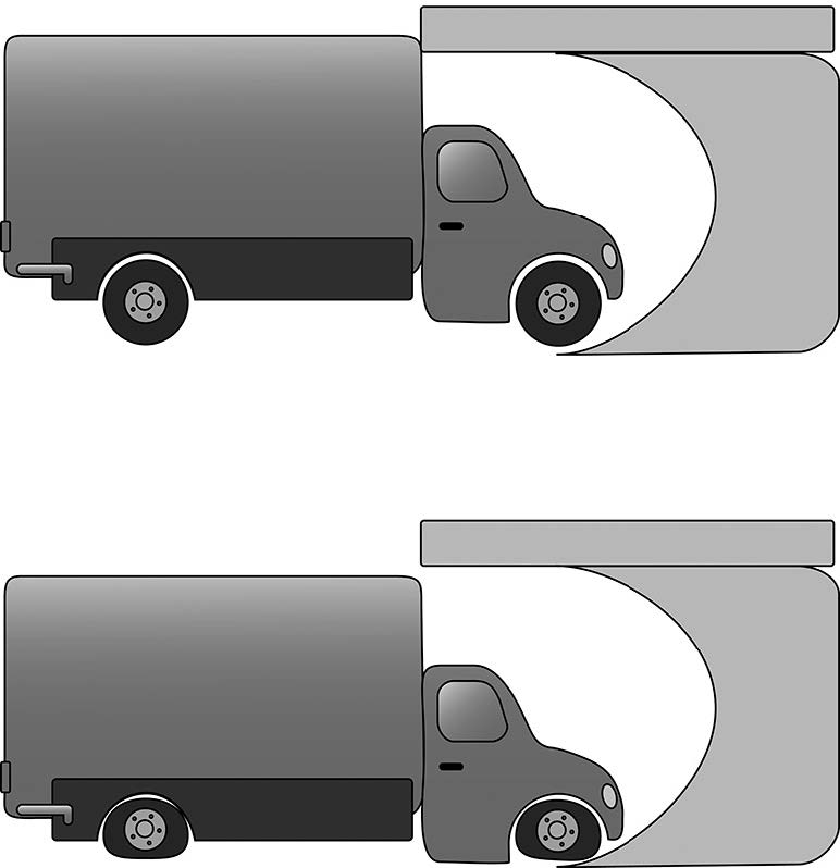 我記得答案是:把輪胎的氣放掉一些。這會讓卡車的高度降低到能夠從高架橋下方通過。