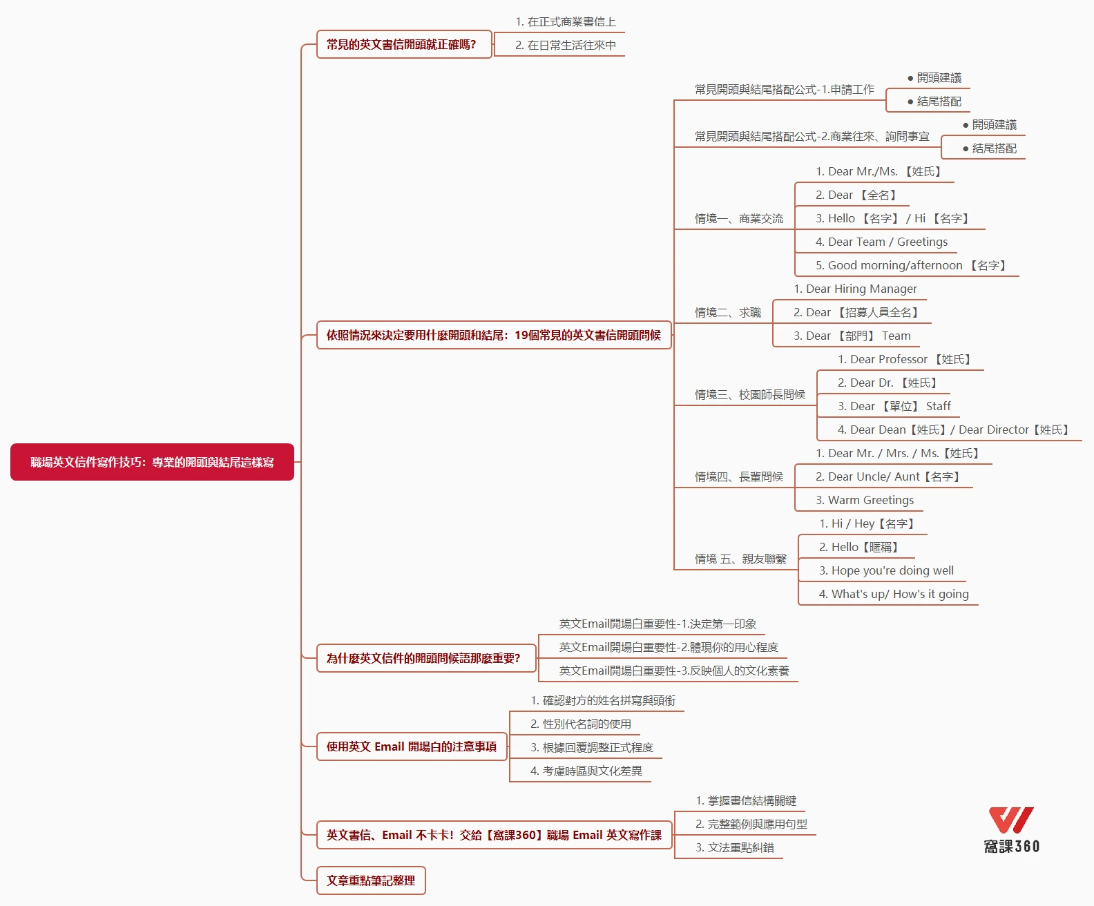 學會了得體的開頭問候,只是寫好英文信的第一步,接下來的信件內容也是關鍵之一。窩課360的《職場 Email 寫作:商業英文書信的精準表達技巧》,帶著各位從零開始建立專業寫作邏輯。不單只有單字文法,更透過三大系統化的教學,幫助大家掌握技巧: