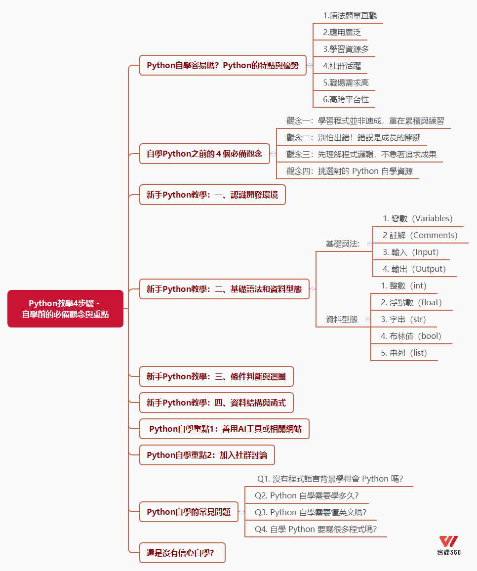 P在展開 Python 自學之路前,先建立正確的學習觀念非常重要。很多初學者會因為期待與現實落差太大而導致中途放棄。以下 4 個觀念,能幫助新手用穩定的心態前進,順利完成 Python自學的目標。