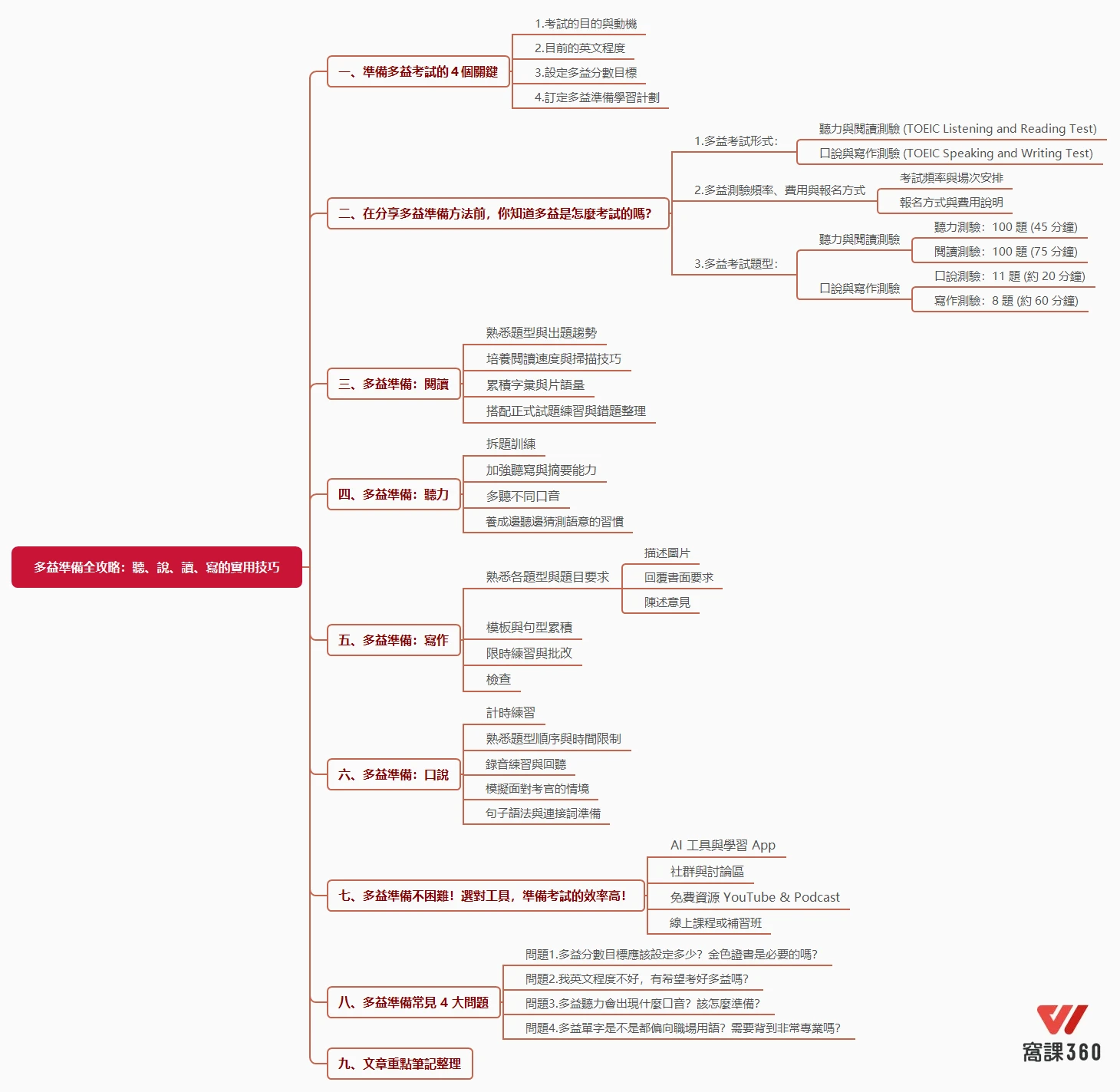 綜合以上說明,從認識考試形式、掌握題型,到各科目對應的準備方法與高效工具的應用,相信大家對「多益準備」已經不再那麼陌生或迷惘了吧?多益準備是一場耐力賽,不需要一開始就追求完美達標。只要能穩定地練習、按部就班前進,並在過程中不斷修正錯誤、調整方向,再搭配適合自己的資源與工具,就一定能逐步累積實力,在未來看到令人滿意的分數成長。