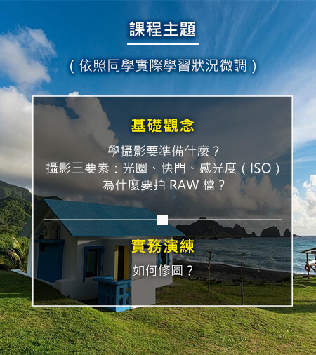 在上課前,你可能對攝影觀念不熟悉,對攝影三要素更是毫無概念。不過別擔心!龍文老師帶你無痛進入攝影的領域,拍出心目中的美照。
