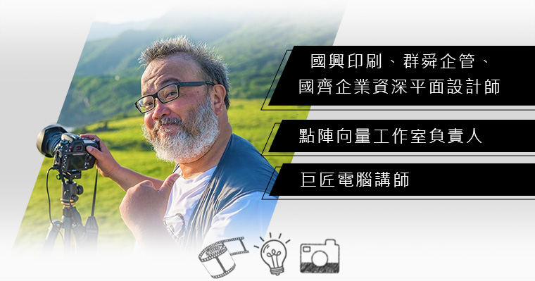 黃龍文老師擅長各類型的影像處理軟體,擅長 Photoshop、Illustrator、InDesign、CorelDRAW、平面設計、Line 貼圖設計、會聲會影數位剪輯、印刷設計、專業攝影等領域,並持有 ACA 認證——Photoshop、Illustrator、InDesign,擁有厚實的專業影像處理實力。此外,更著有多本設計相關書籍,包含《平面設計實務養成》、《數位出版》、《設計最前線—視覺創意設計即戰技》、《設計最前線─跨平台數位設計即戰技》等。