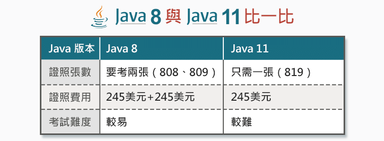 Java 11 與前一版本的 Java 8 有什麼差異呢?