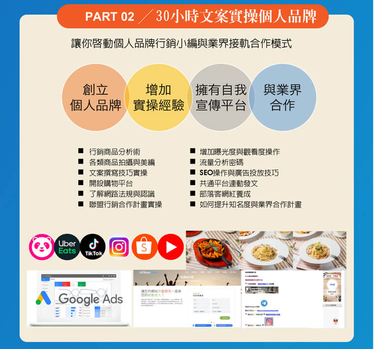 上完課,你就能掌握一頁式網頁的製作流程,從基礎觀念建立,到頁面設計實務操作,最後完成網頁上架,手把手不藏私教學,輕鬆學會低成本、高效益的網路行銷。
