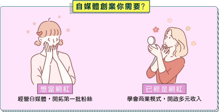 在這個自媒體時代,人人都可以當網紅!但要持續經營一個頻道並不容易,除了拍影片、寫文章,還要跟趨勢、粉絲互動,更要有商業能力。本課程幫您聚焦自媒體的平台行銷跟定位,讓您快速加入這波「網紅經濟」,讓自己這個品牌創業成功!