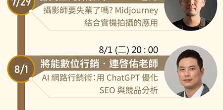 現在報名講座,並於當天出席直播活動,就具抽獎資格, 跟上時下最夯AI講座活動,立即把老師滿滿的乾貨帶回家, 還有機會獲得$200禮券!