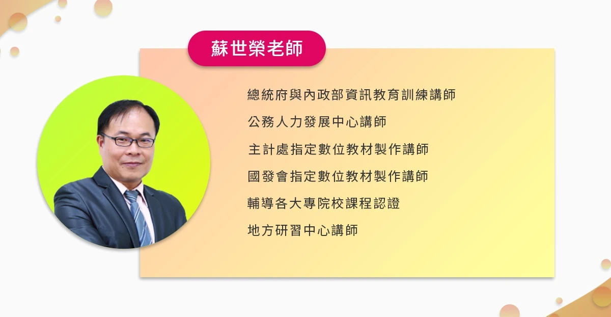 Office 軟體教學大師的蘇世榮老師