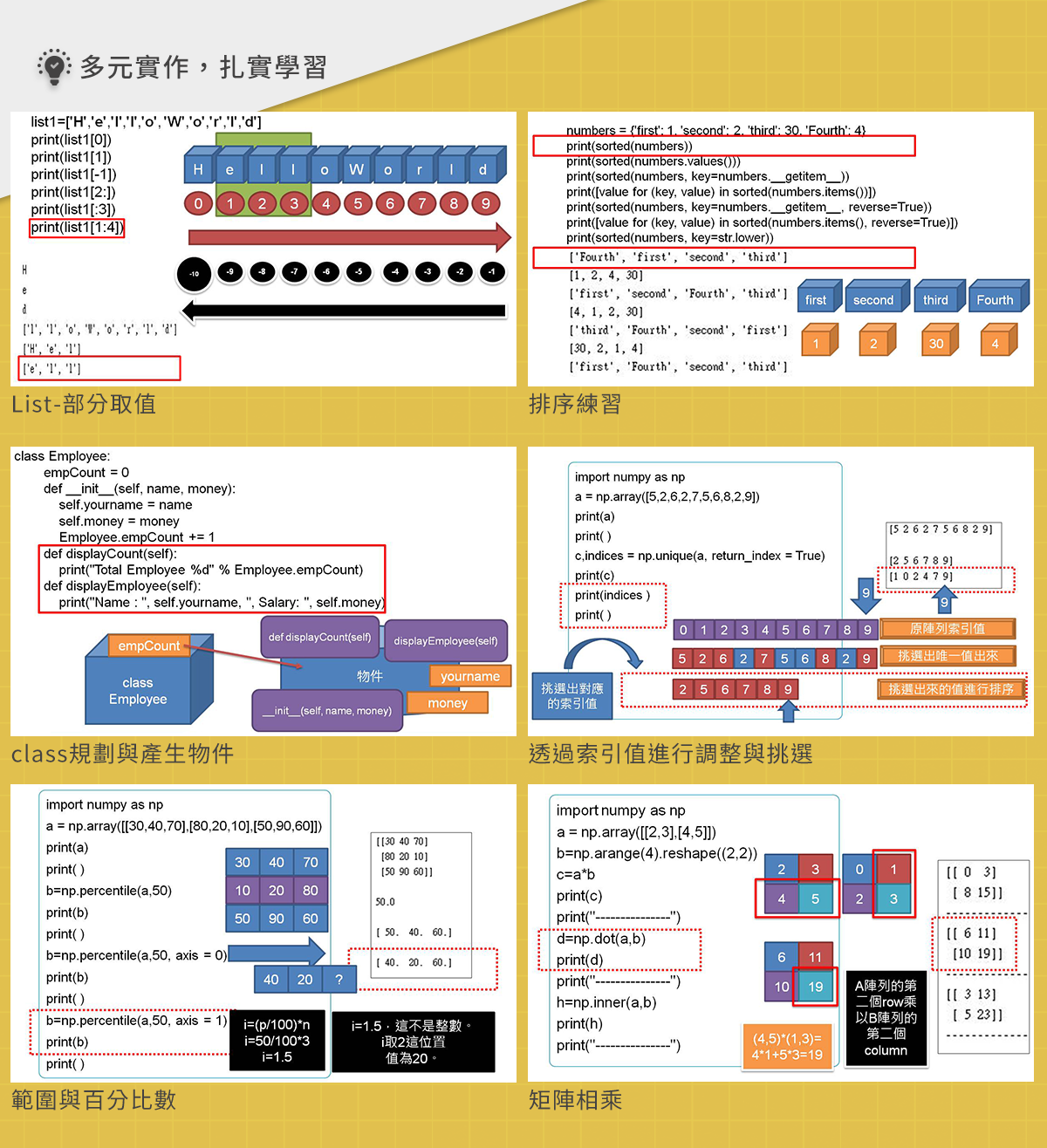 隨著資料量愈來愈大,資訊產業需求人才大增,且需求方向也會隨之變化,資料科學領域的需求將會愈趨明顯,如何進行資料擷取、整理與分析後,再以圖表顯示則會是很重要的技能。本課程多元教學,內容豐富,包含熟悉Python基本語法操作、了解數值計算與處理、了解網頁基本擷取動作等範疇,幫你打穩基礎,提升職場競爭力,搶先卡位資訊產業。