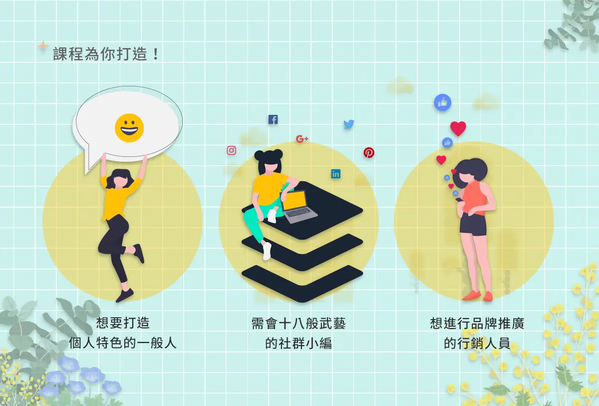 無論你是自己想打造個人特色,還是需要會十八般武藝的社群小編,或是想用特效框做品牌推廣與曝光的行銷人員,全都很適合學習這項技能。學會後,你可以將自己畫的圖製作並建立成特效框,上傳照片至FB時就可以直接套用,省時又省力;還可以在用特效框宣傳時,設定使用地區範圍、使用期限等,期限一到就會自動下架,這麼方便的功能還不快來學!
