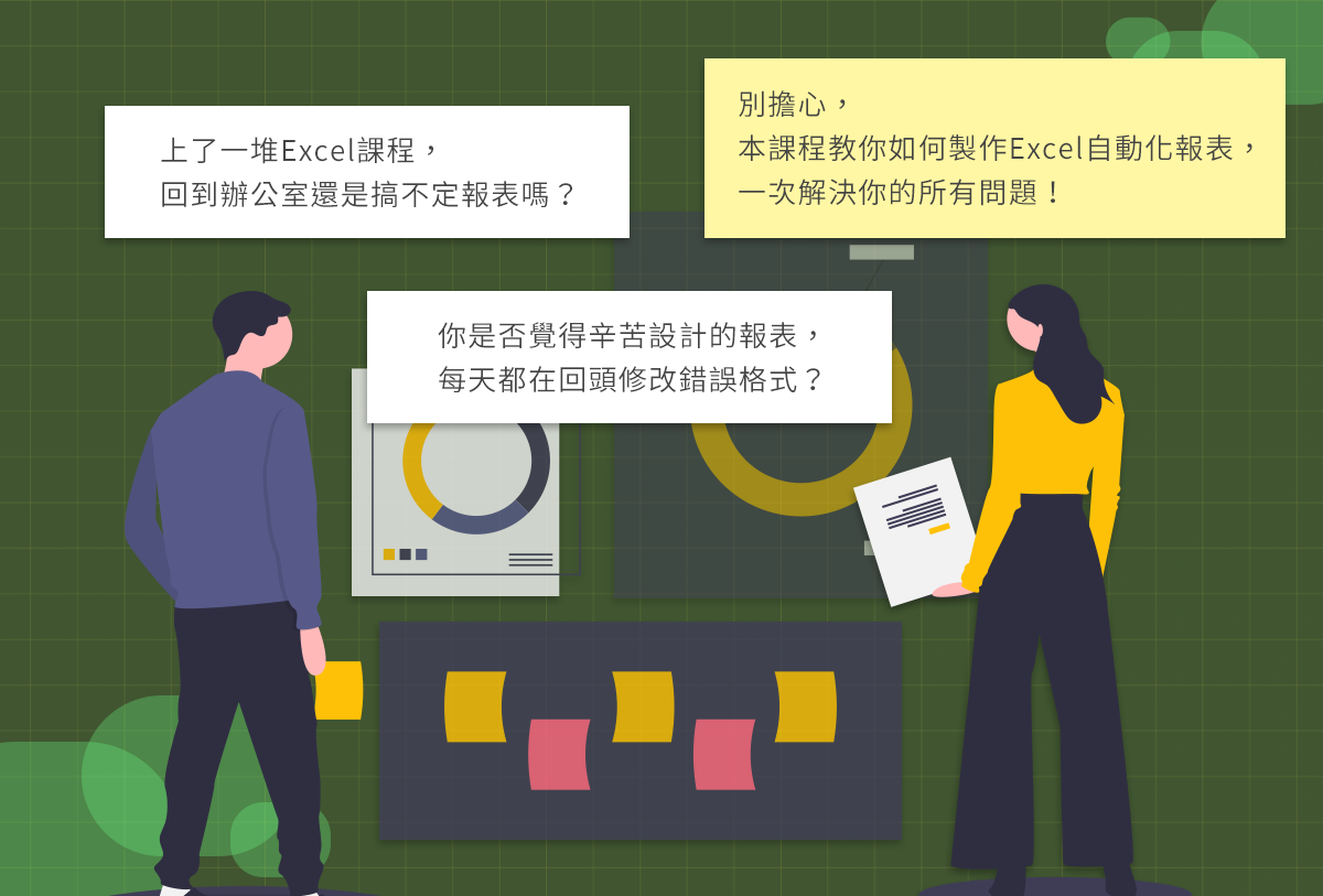 用Excel製作報表可說是一般人的常備技能,然而如何更有效率地去製作報表呢?如何在多人填寫與處理時,設計出準確度高且填入內容可準確執行的報表?或者如何製作出能自動計算與分析內容的報表呢?如果你有上述這些問題,本課程將一一解答你對Excel辦公室軟體的疑惑,讓你快速學會操作Excel,做出精美好用的報表。