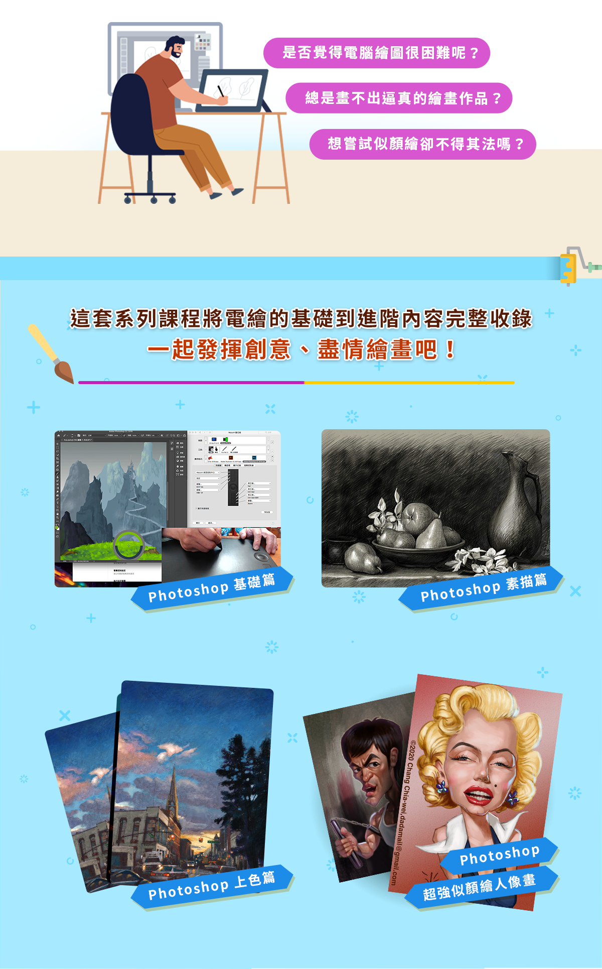一連串的系列課程,輕鬆增進電繪功力