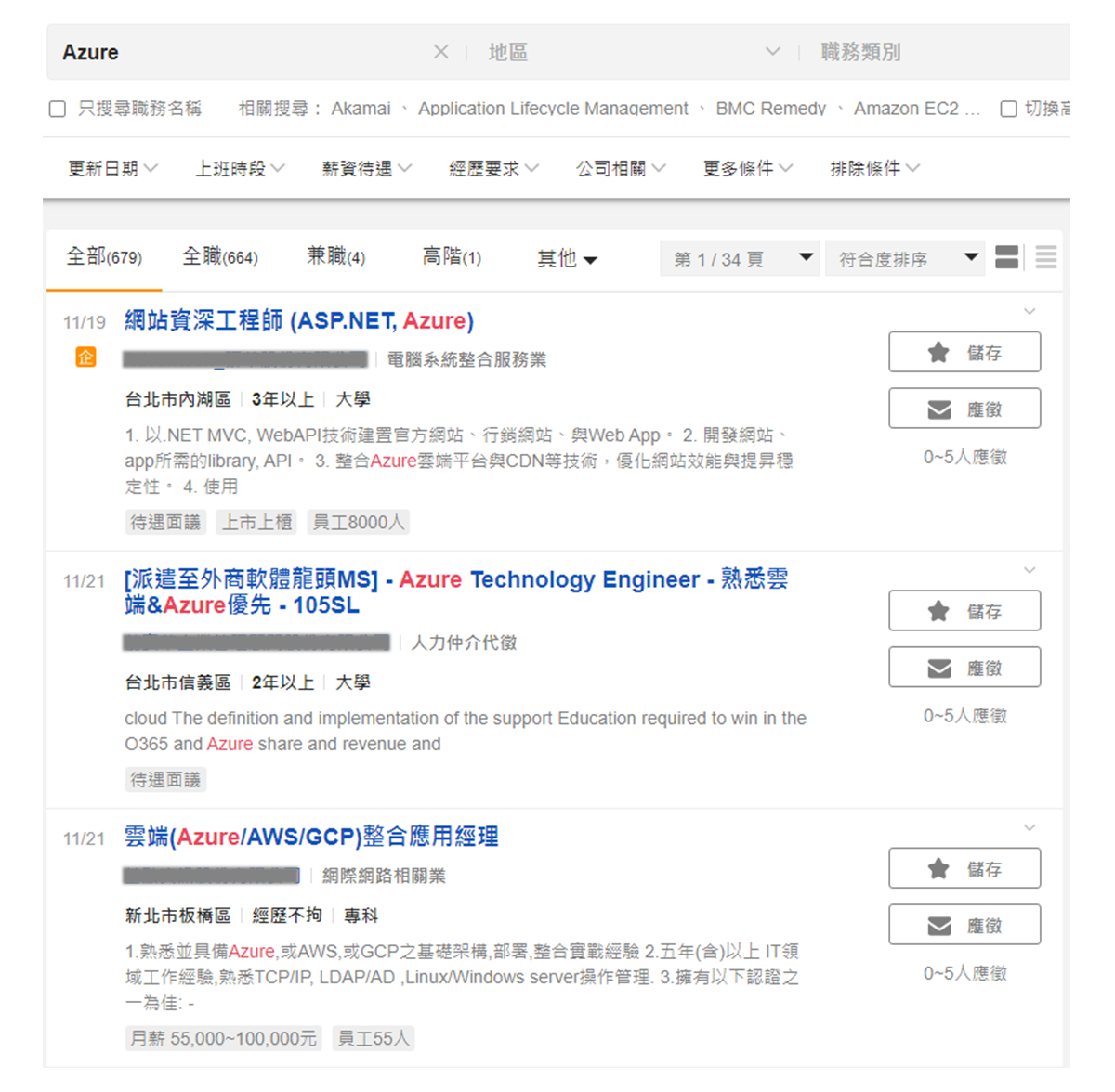在求職網站上,只要是有關於雲端系統的工作內容,絕大多數的企業公司都會要求具備Microsoft