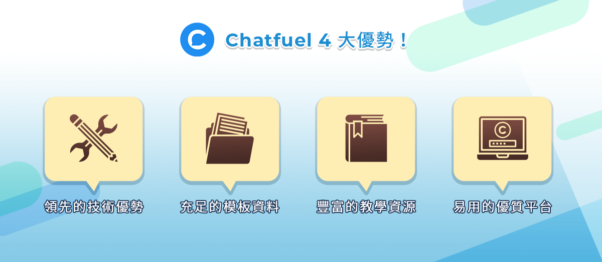 Chatfuel 的創造宗旨是讓每個人都能輕易在 Facebook Messenger 上建立專屬的聊天機器人。它一誕生,使用率迅速增加,很快就活躍於Messenger聊天機器人市場,在全球有近 50% 的市佔率,優勢包含領先的技術優勢、充足的模板資料、豐富的教學資源與易用的優質平台等。 Chatfuel 會針對既有資訊進行自動化的答詢,在經營事業上是非常得力的助手。未來,還可持續延伸學習,結合客製化後台、後台動態網頁製作等,更具有競爭力。