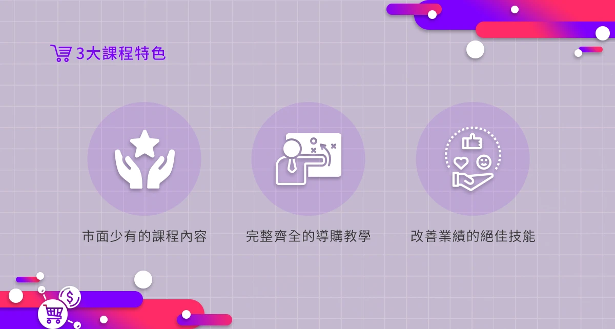 目前的網路行銷多著重在素材的準備與商品的拍攝兩方面,往往忽略了友善消費者選購的機制,所以優質的商城必須要有「導購」的設置,幫助消費者快速找到適合的商品。本課程將介紹電商運作流程中,最常被忽略的關鍵技術「導購技巧」,一舉提升你的網路行銷與網站規劃力!