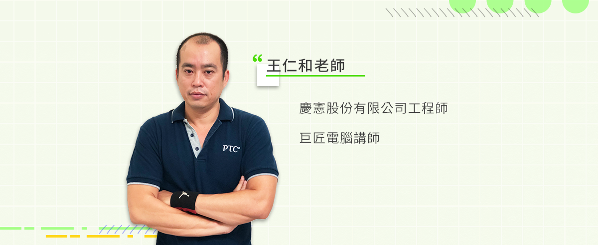 王仁和老師從事機械製圖工程師資歷超過15年,專精於AutoCAD及PRO/E兩套繪圖軟體,以AutoCAD為工業設計工具;PRO/E曲面功能為產品設計工具。本身擁有豐富的業界經驗,以及扎實的產品設計實力,同時憑藉著多年的教學經驗,指導學員成為產品設計工程師,成就夢想。