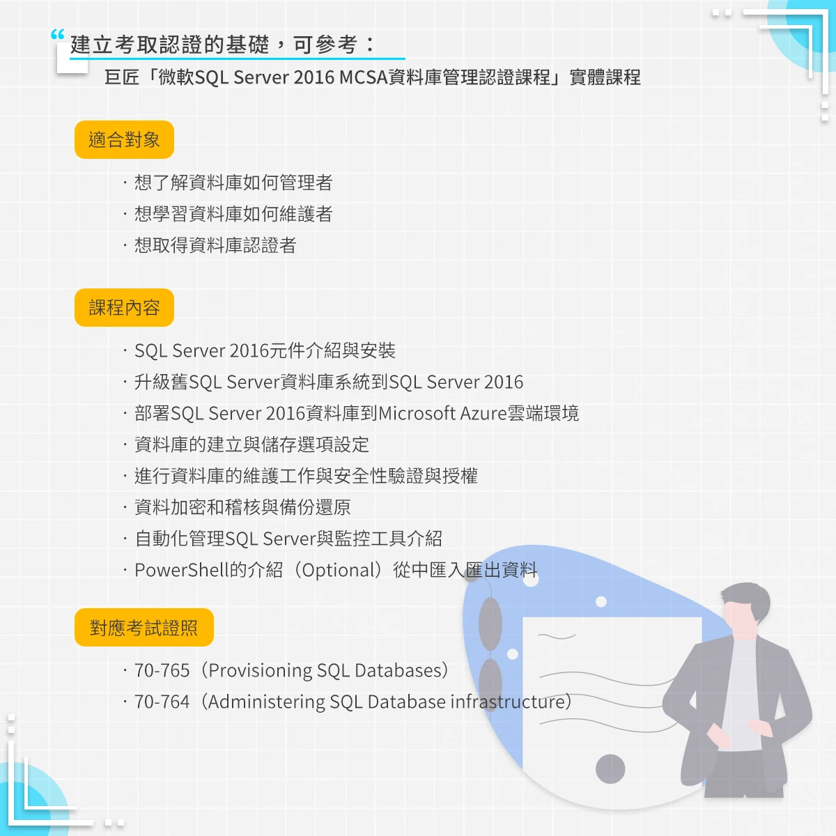 考取「Microsoft SQL Server 2016 MCSA」,為履歷加分