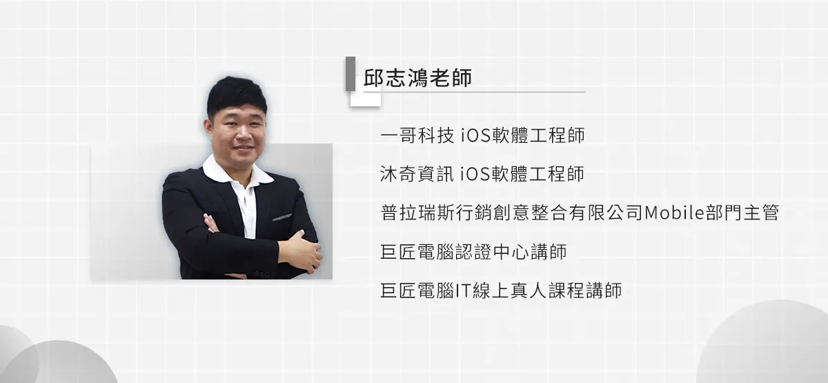 邱志鴻老師的專長在各種多元的App開發,並且長年投入在這塊領域中,開發出許多成品,應用在電商、平台、資訊呈現(視覺整合)、物聯網軟體等,更執行過許多跨領域的專案,業界經歷相當豐富。在教學上,也不斷將大數據、物聯網以及機器學習(人工智慧)等未來趨勢議題,融入課程設計當中,讓上完課的學員們能與時代相接!