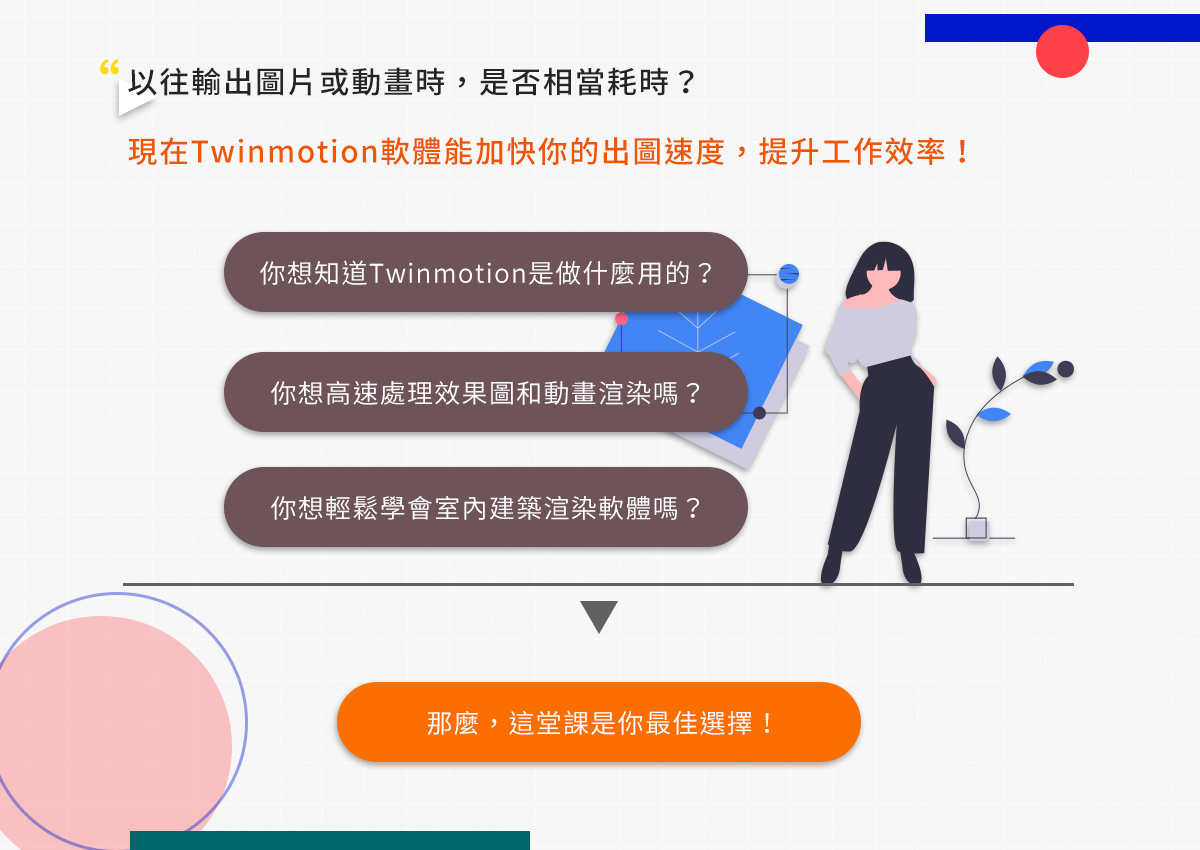 掌握Twinmotion,快速完成渲染作品,趕緊加入課程享受高效率的工作流程吧!