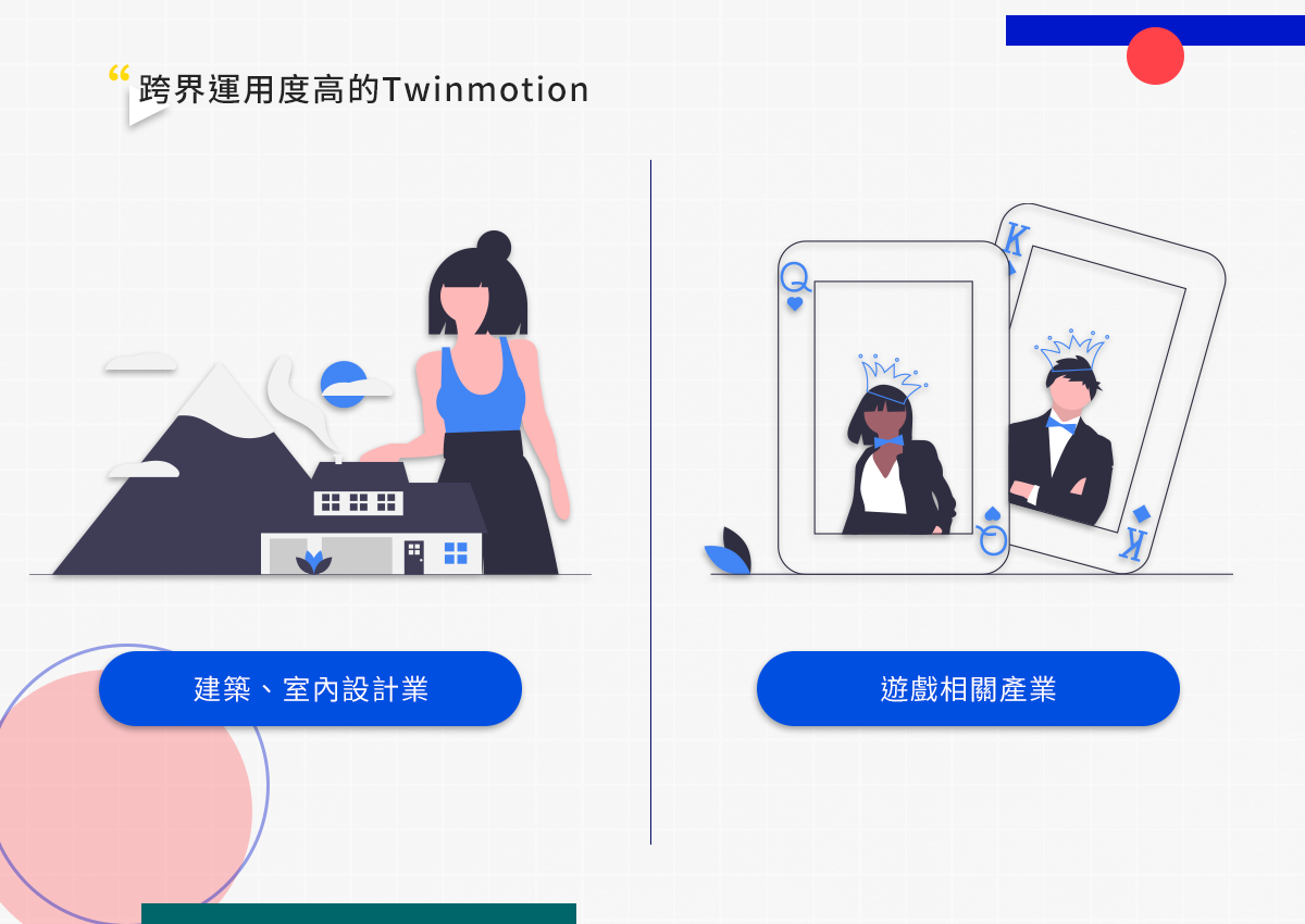目前職場應用SketchUp與Max軟體的比例高,只要配合Twinmotion無縫接軌,你就可以快速、有效率地完成工作。 此外,Twinmotion不僅在建築、室內設計產業廣為人所接受與運用,遊戲相關產業也注意到這款軟體的實用之處。目前Twinmotion已被UNREAL的遊戲引擎軟體併購,由此可見遊戲業將慢慢提升Twinmotion的使用率。未來如果想再進階學習Lumion或其他相關軟體,那Twinmotion絕對是你必學的軟體!