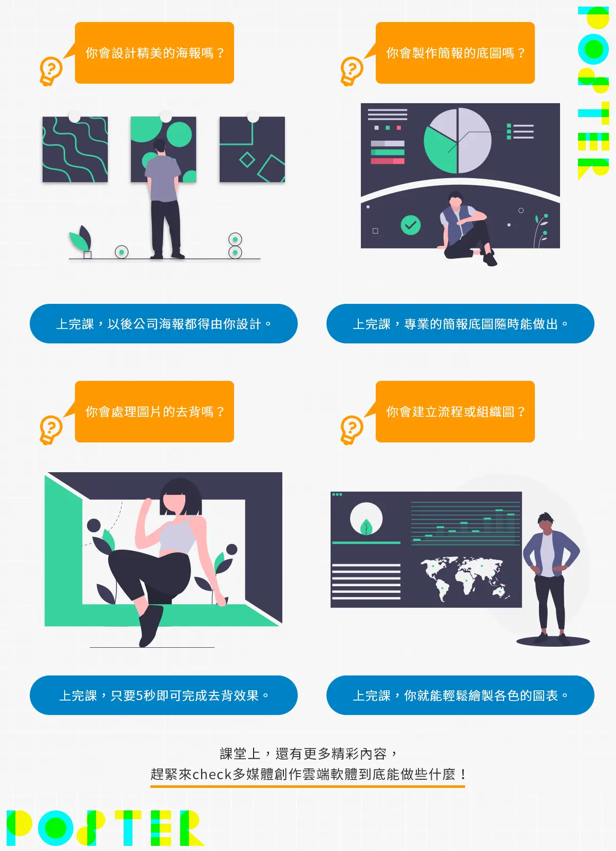 想了解更多多媒體創作雲端軟體的實用功能嗎?加入課程,提升個人設計力吧!