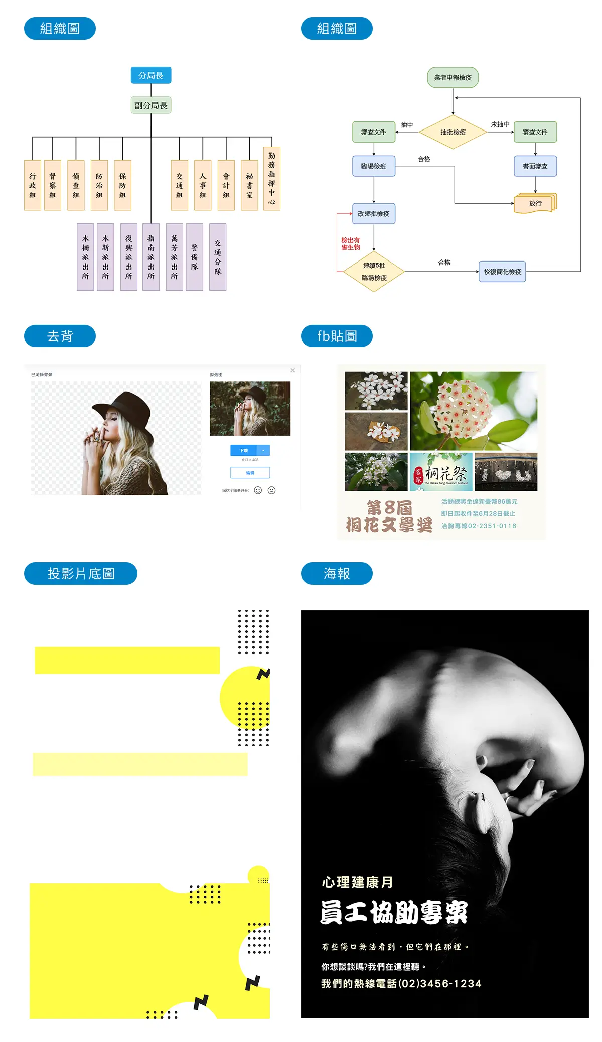 課堂上,老師將整合平時工作中經常遇到的各種需求,並選擇極易操作的好用雲端工具,設計出優質的多媒體作品。如此,更能貼合職場實際狀況,並且所分享的功能全都能讓你的工作效率顯著提升。有了便利的雲端工具協助,不僅可以快速完成海報來宣傳商品,還能效率繪製簡報中的組織與流程圖,未來多媒體的設計工作再也難不倒你。