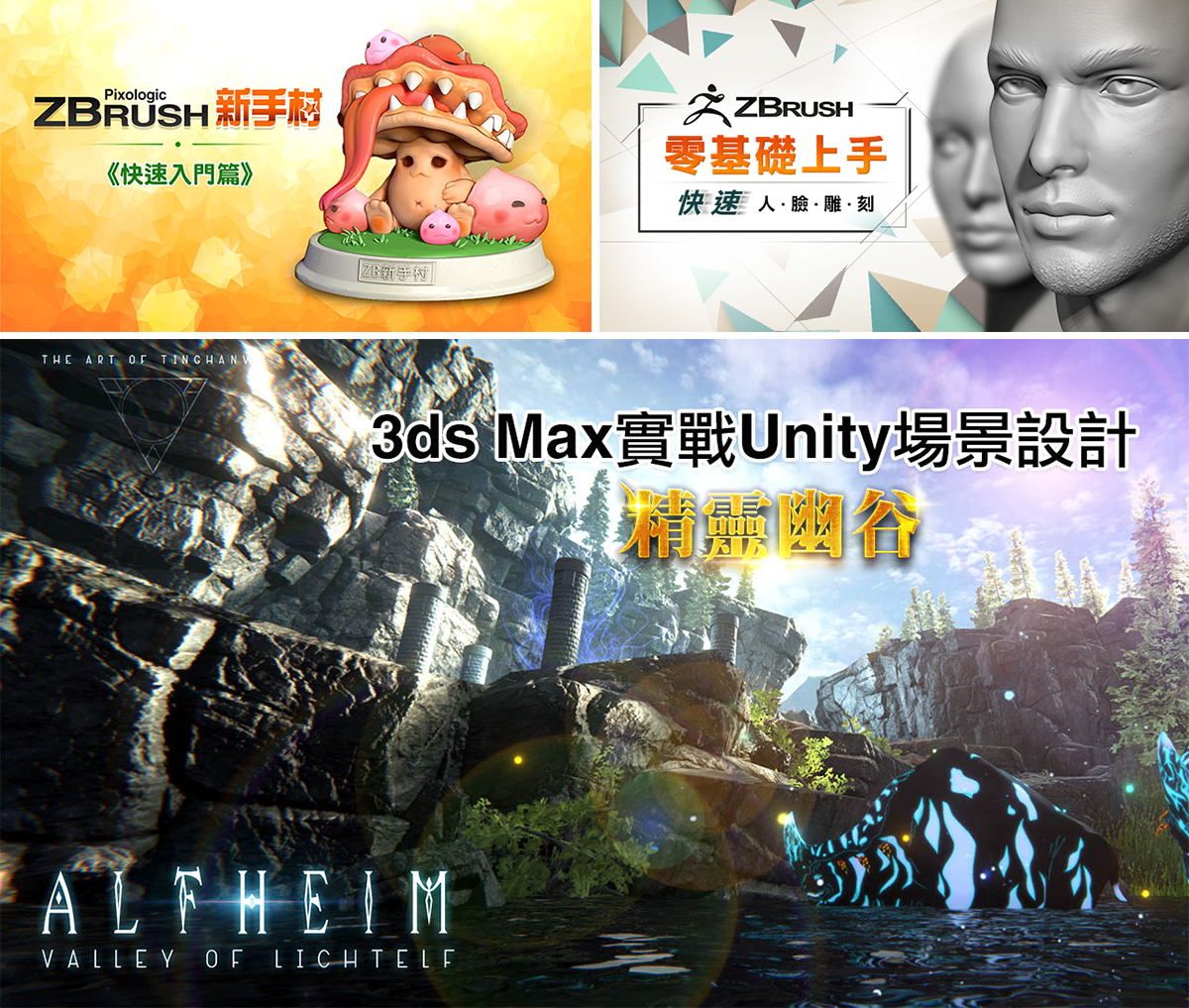 吳亭翰老師還有其他關於 3D 設計與製作的課程,若你對 ZBrush 還不熟悉,可以先修習窩課360上 的「ZBrush 新手村《快速入門篇》 」、「ZBrush 零基礎上手《快速人臉雕刻》 」等課程。若還想再多了解其他的 3D 遊戲與動畫軟體,還可以修習「3ds Max 實戰 Unity 場景設計《精靈幽谷》 」課程,創作出逼真的遊戲動畫場景。