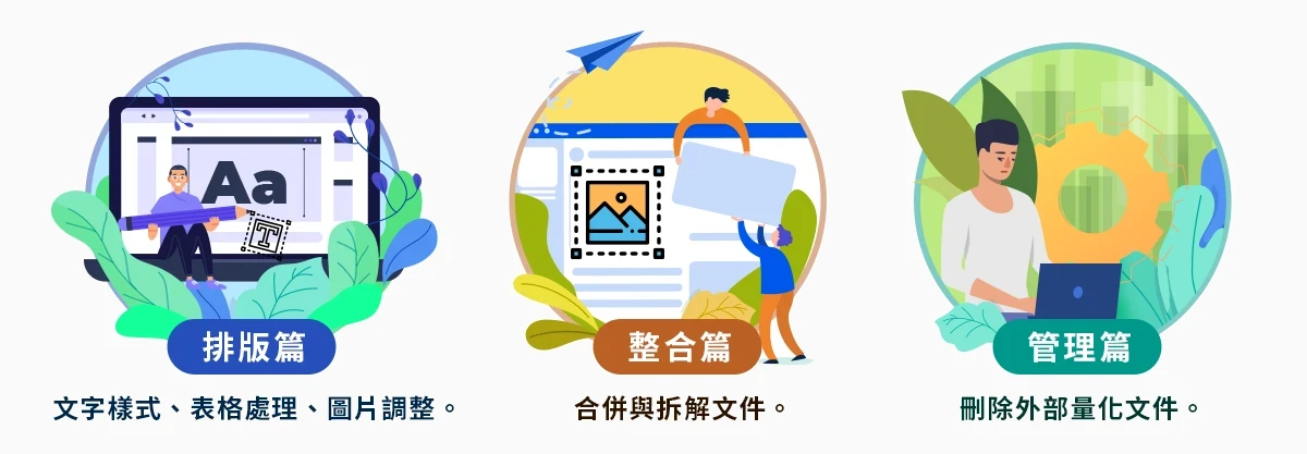 因此,本課程精選許多案例,可改善文件處理耗時的問題,如: