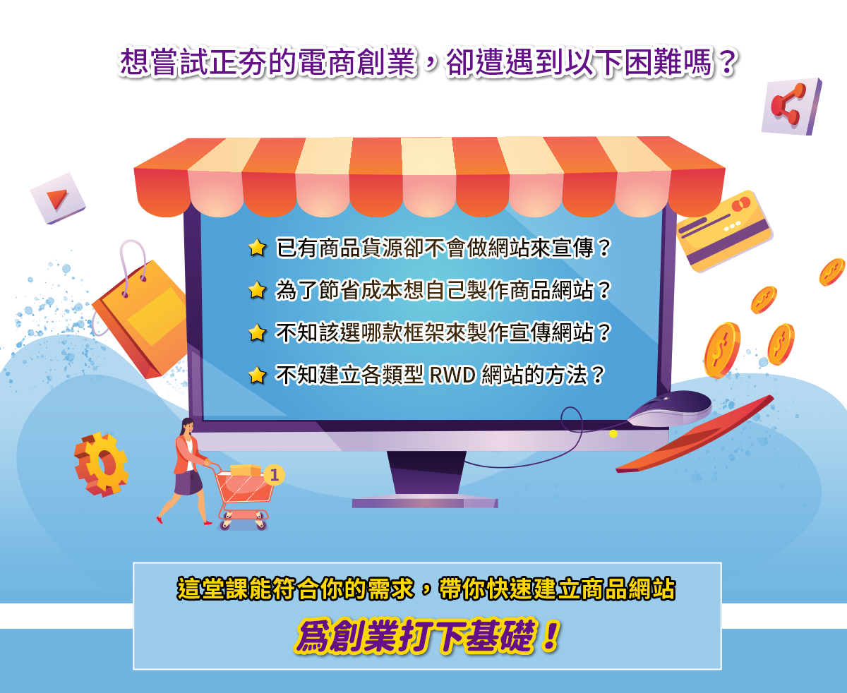 更多 RWD 網站架設技巧全都收錄在這堂課中,快加入課程,建立實用又具有專屬特色的商品網站吧!