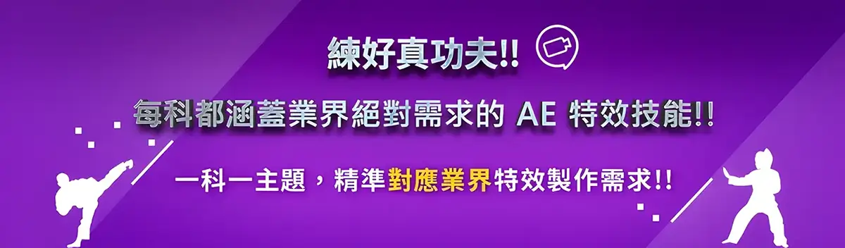 AE 介面複雜工具眾多,實體上課內容多又雜,受限時數,關鍵重點未能深入學習,課程上完仍然無法就業。「穩紮穩打基本功系列」能幫你補強 AE 特效製作應該掌握的關鍵,順利銜接職場。