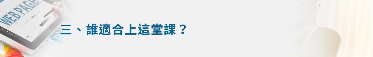 上完課,你就能深入了解以 Photoshop 製作網頁版型的流程。此外,再搭配相關課程「社群行銷廣告 Banner 設計實務」,還可以延伸設計的靈活度,完成更多元的優秀作品。