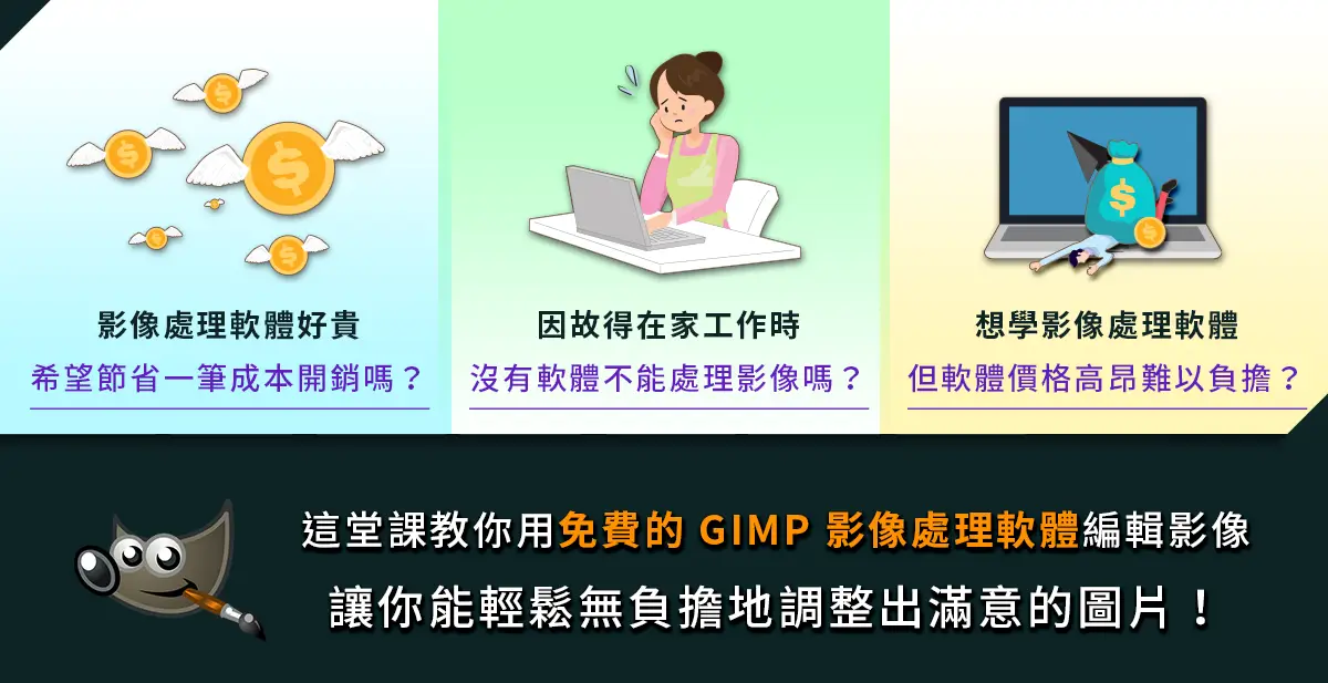 更多關於 GIMP 影像處理軟體的內容,都收錄在這堂課中,快加入課程,更自由地處理影像吧!