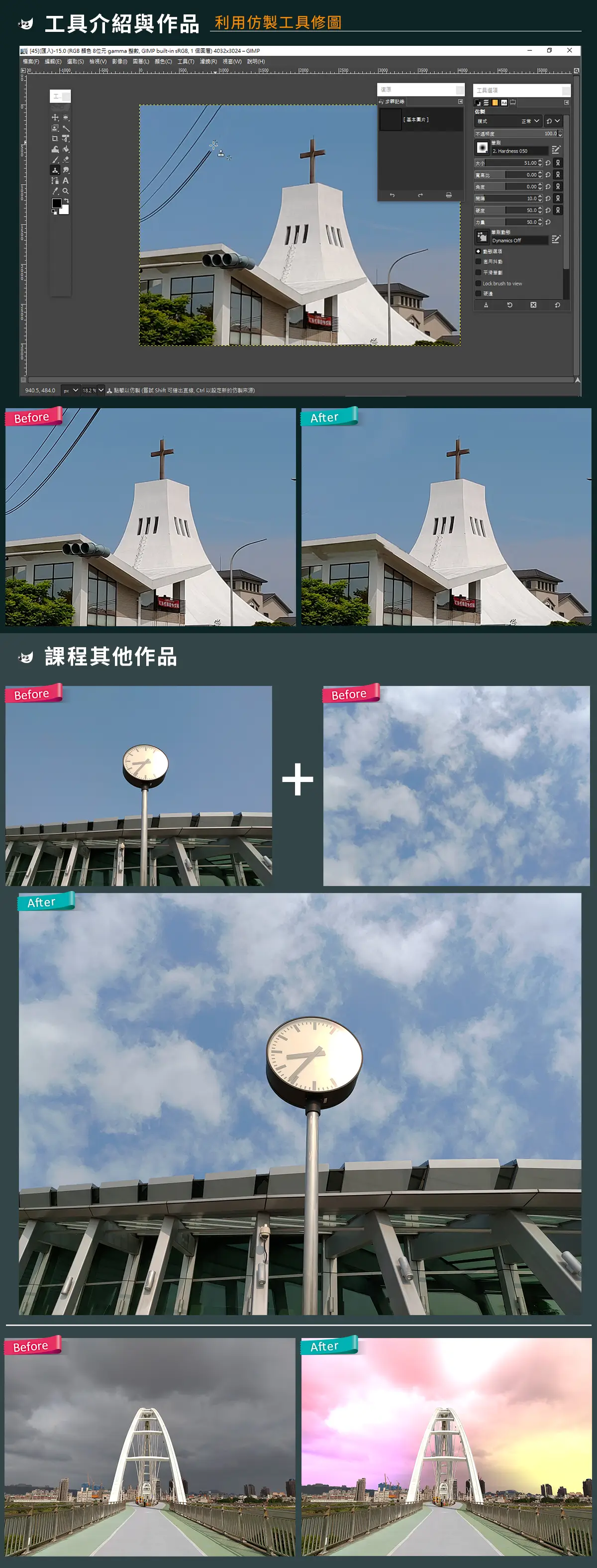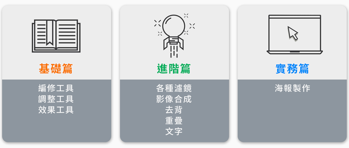 課堂上,老師將完整說明 GIMP 的介面、功能與使用方法,逐一講解它豐富的影像處理技巧,並整合實務應用。課程結構如下: