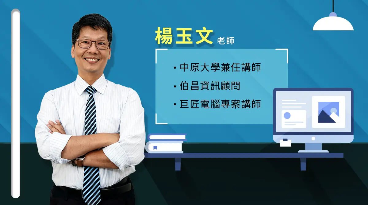 楊玉文老師專精於 Microsoft 系列、ODF 系列、Adobe 系列和程式設計等多款軟體,且具備 Microsoft MOS 大師級、TQC PhotoImpact、TQC 網頁、HTML、Adobe CS5 系列等多項專業認證。同時,在電腦教育方面擁有 30 年資歷,授課以簡單扼要與深入淺出的講解來引導學習;此外,也強調理論與實務整合應用,為教學創造了嶄新的方向。