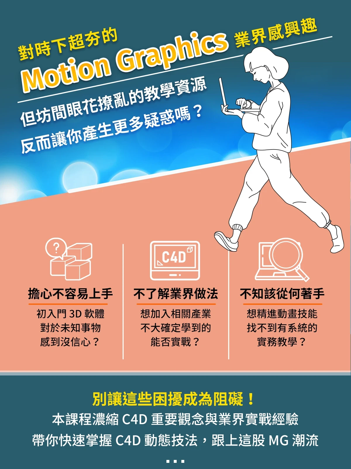 更多關於 Cinema 4D 的豐富內容,全都收錄在這堂課,趕緊加入課程,學會用 C4D 做出酷炫的動態效果吧!