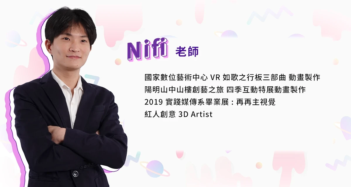 課程由身為 C4D 專家的鄭宏仁老師所規劃,由 Nifi 老師所錄製而成。