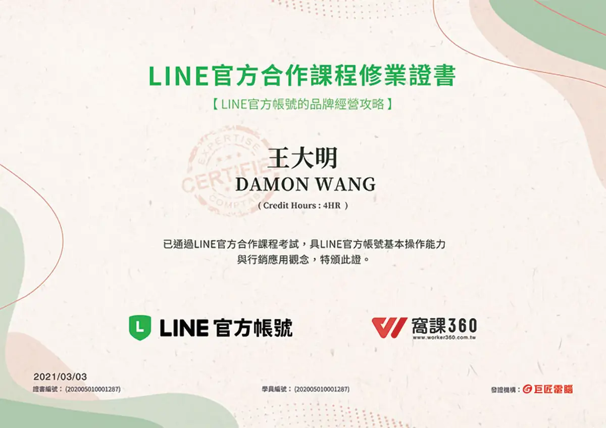 欲申請證書,請私訊窩課360的LINE官方帳號,並輸入關鍵字:LINE ,申請證書。