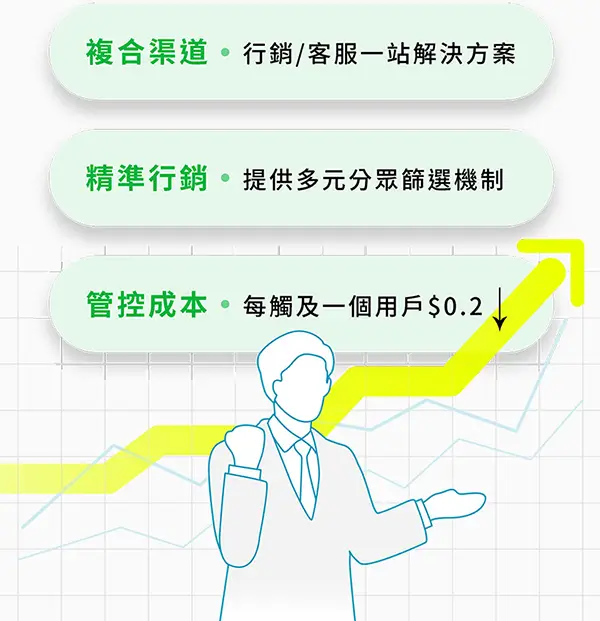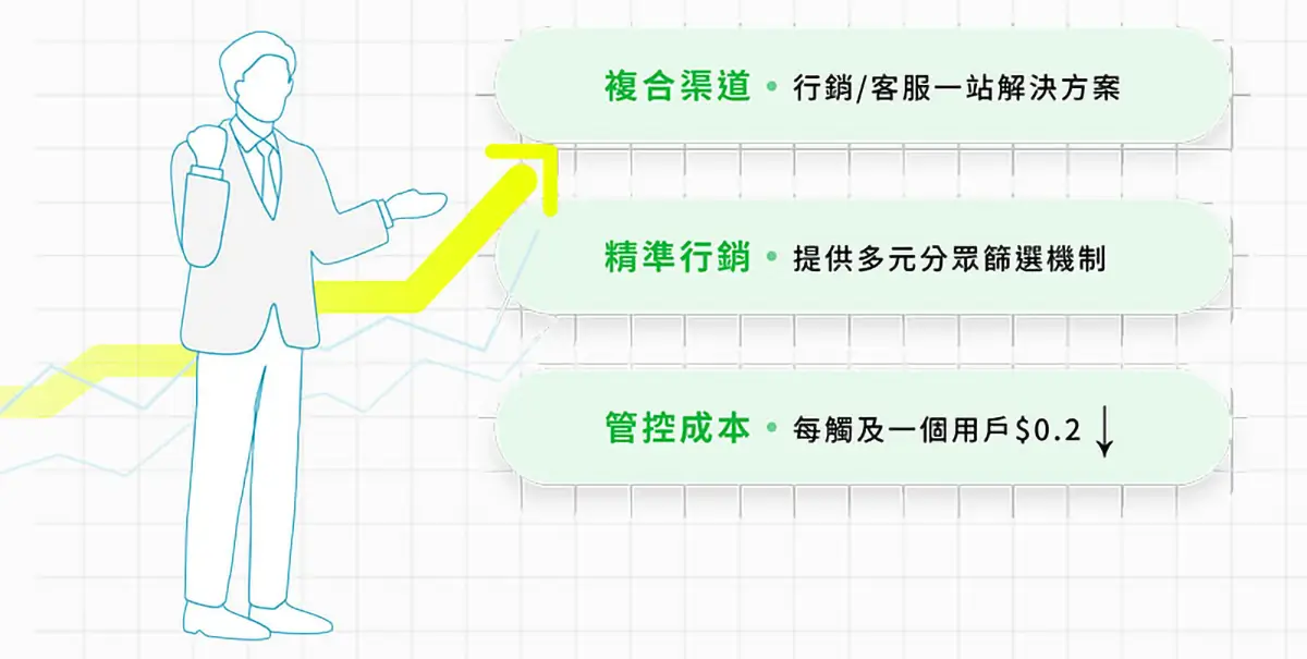 利用LINE官方帳號與消費者產生連結,用更低的成本做更精準的溝通。
