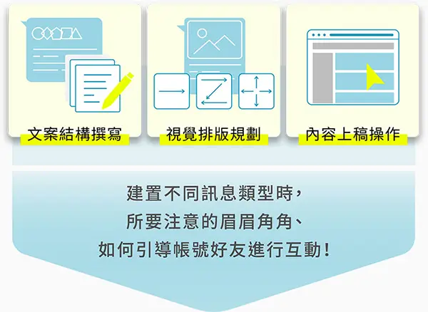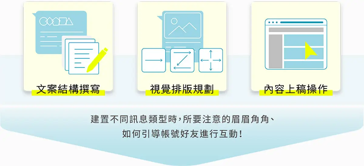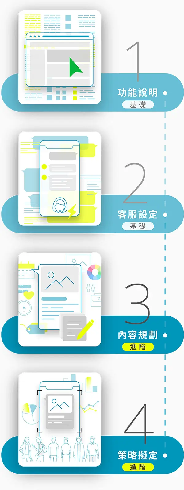 本課程設計了後台訊息發送與好友端收到訊息的動作流程模擬,透過對照帶你了解實際狀況。老師也為經營者整理出容易理解、複製、應用的策略,帶你住進好友心坎裡。無論是實體商家、線上商城、或是微型創業品牌,只要需要與顧客溝通、互動,本課程將帶你找到與顧客關係更加緊密的方式,打造專屬的行銷管道。