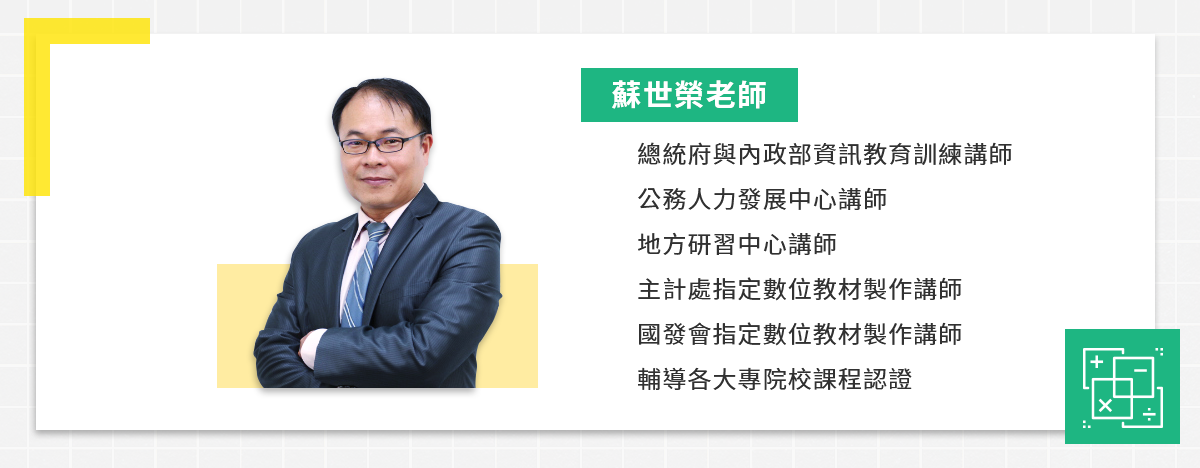 蘇世榮老師的專業強項在於辦公室文件(Office軟體)的資訊化與快速整合運用,以及 ODF 導入和轉檔,教學時擅長以實際案例將複雜內容清楚表達,並在各個政府機關和大專院校擔任過專任講師,致力教學,經驗豐富,教齡長達 25 年,更有眾多精采的著作。