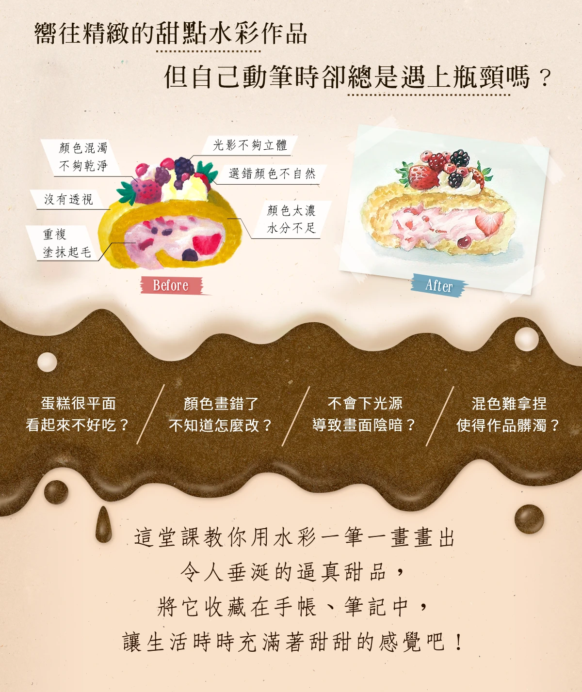 上完課,你將能融會貫通,繪製出千變萬化的美味甜品。