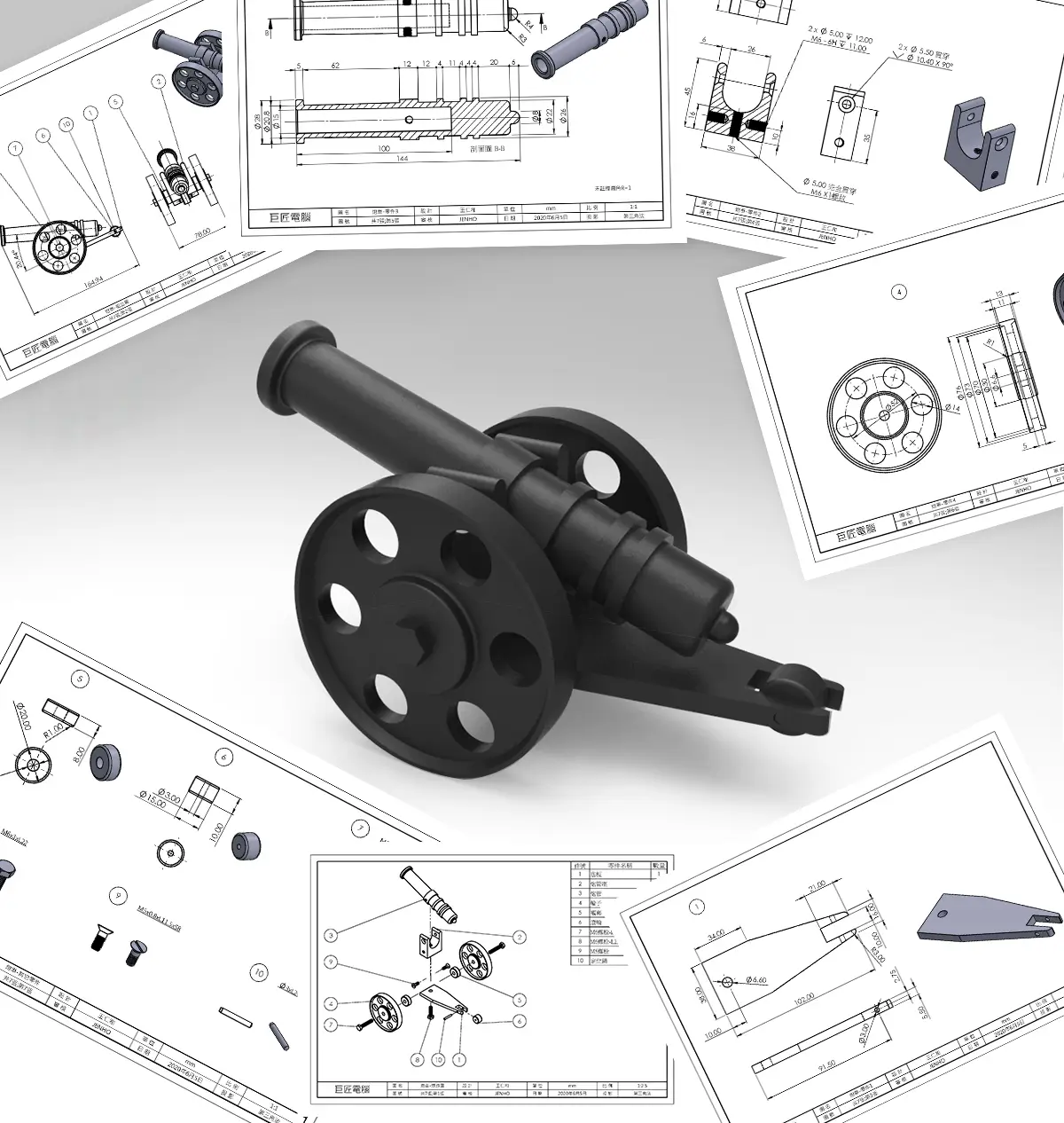 此外,還有炮車繪製,教你完整畫出實物的流程,引導你從拆解步驟中學習繪製方法與訣竅,如炮車組裝方式、工程圖畫法等,讓你在學習 3D 繪圖軟體上能更加順利。