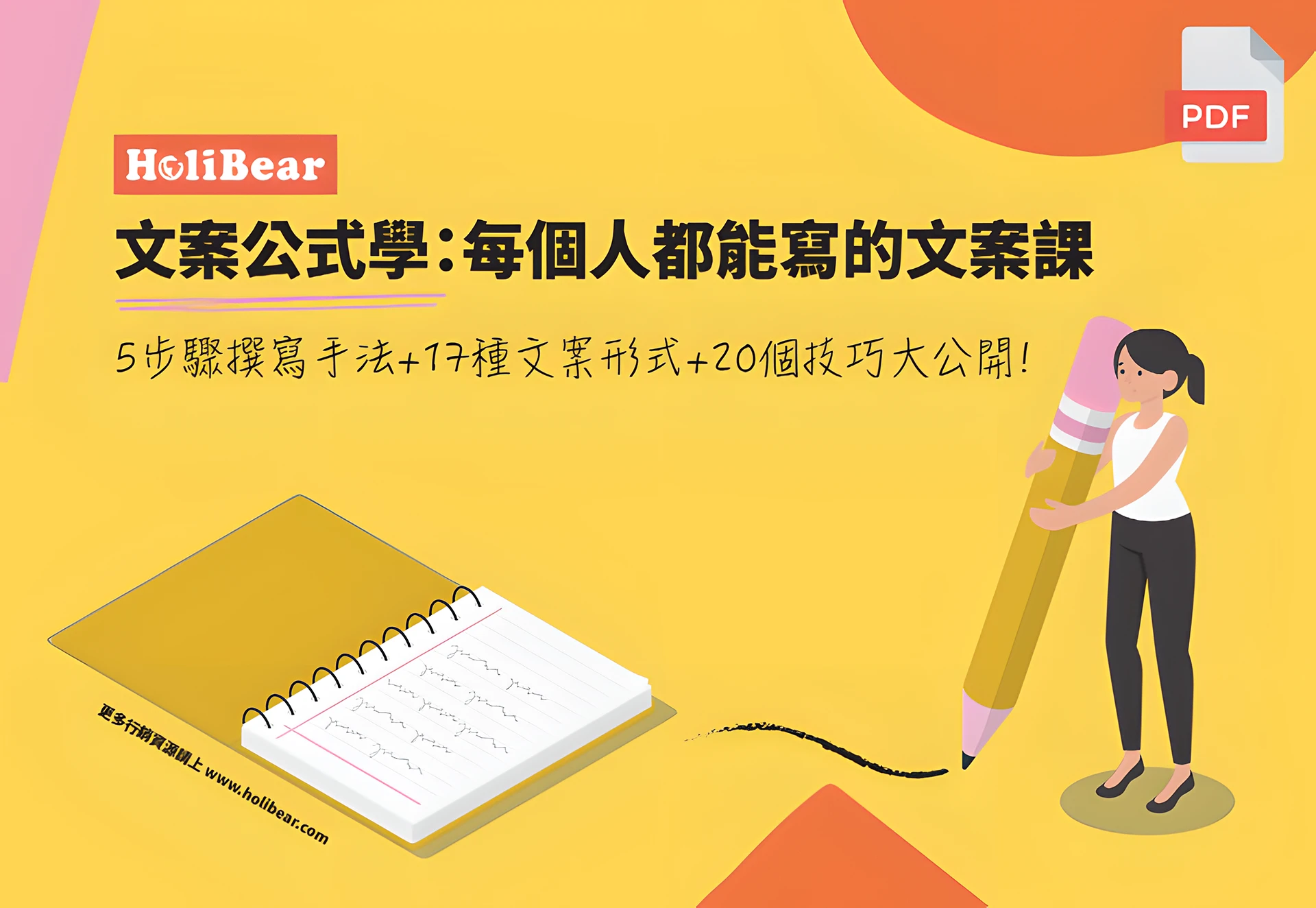 老師佛心再加碼 ! 即日起購買課程,免費贈送 50 頁精美文案電子書一份 ! 統合課程精華,教你使用文案的經典 5 步驟、17 大文案類型與20個超實用技巧,輕鬆寫出好文案 !