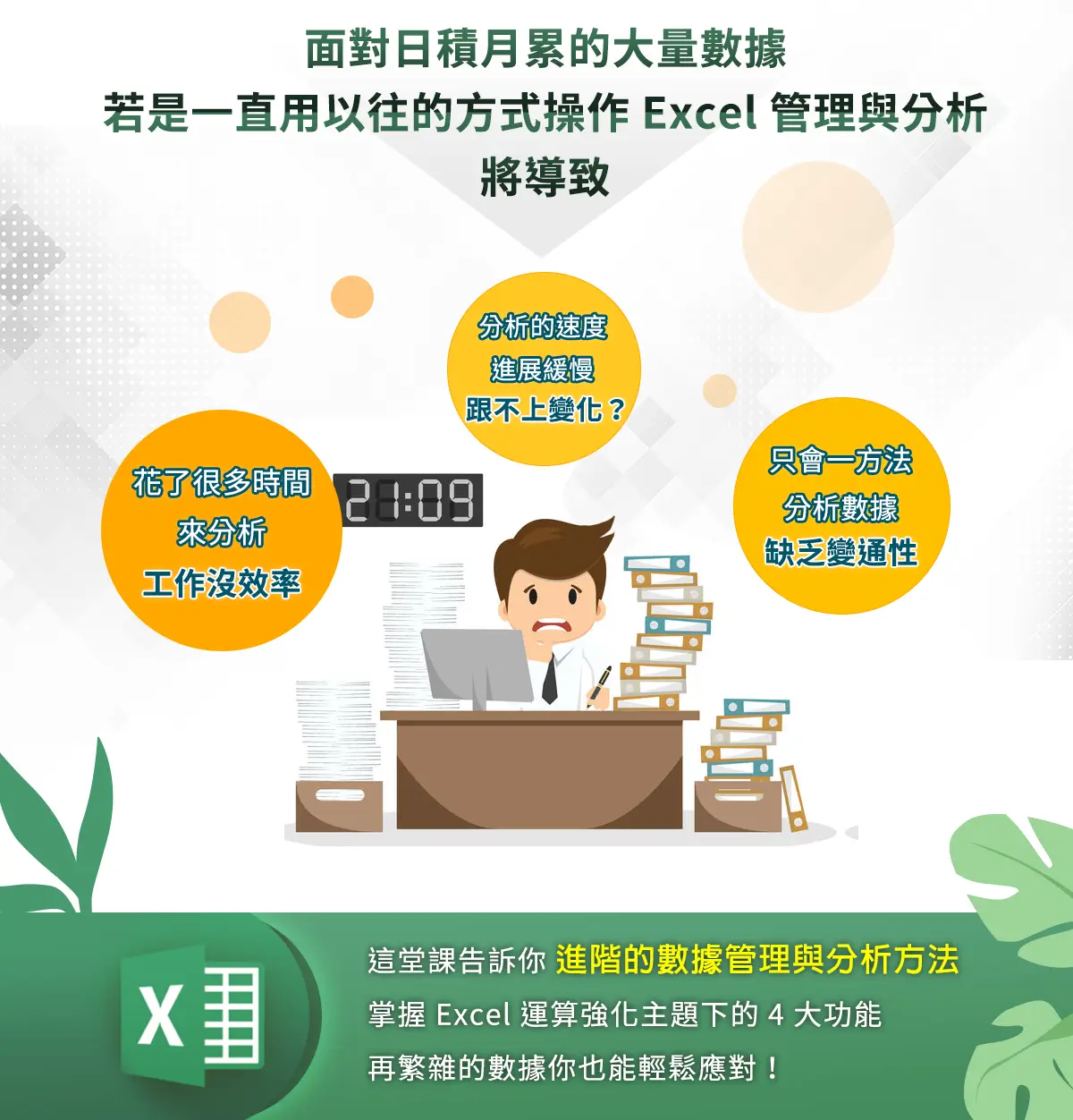 更多關於「Excel 運算強化」的豐富內容全都收錄在這堂課,快加入課程,有效又快速地管理與分析資料吧!
