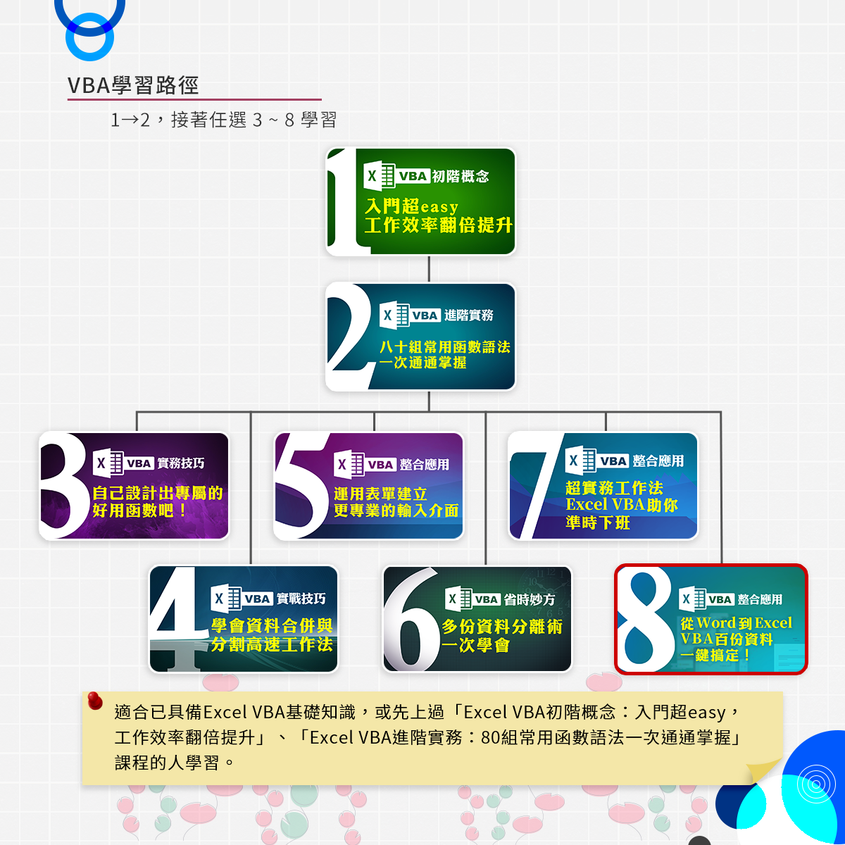 課堂上,老師將詳細說明每個語法的用途,並運用實際資料進行修改與示範,如此更能貼近職場所需,學完後馬上就可以運用到自己的工作場合!此外,利用實例來學習Word VBA,也將較容易了解各個語法的原理與功能,加深學習印象。